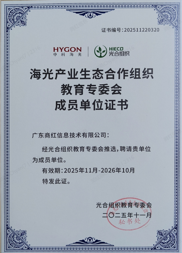 商红科技再添新身份!受邀加入海光光合组织教育专委会成员单位