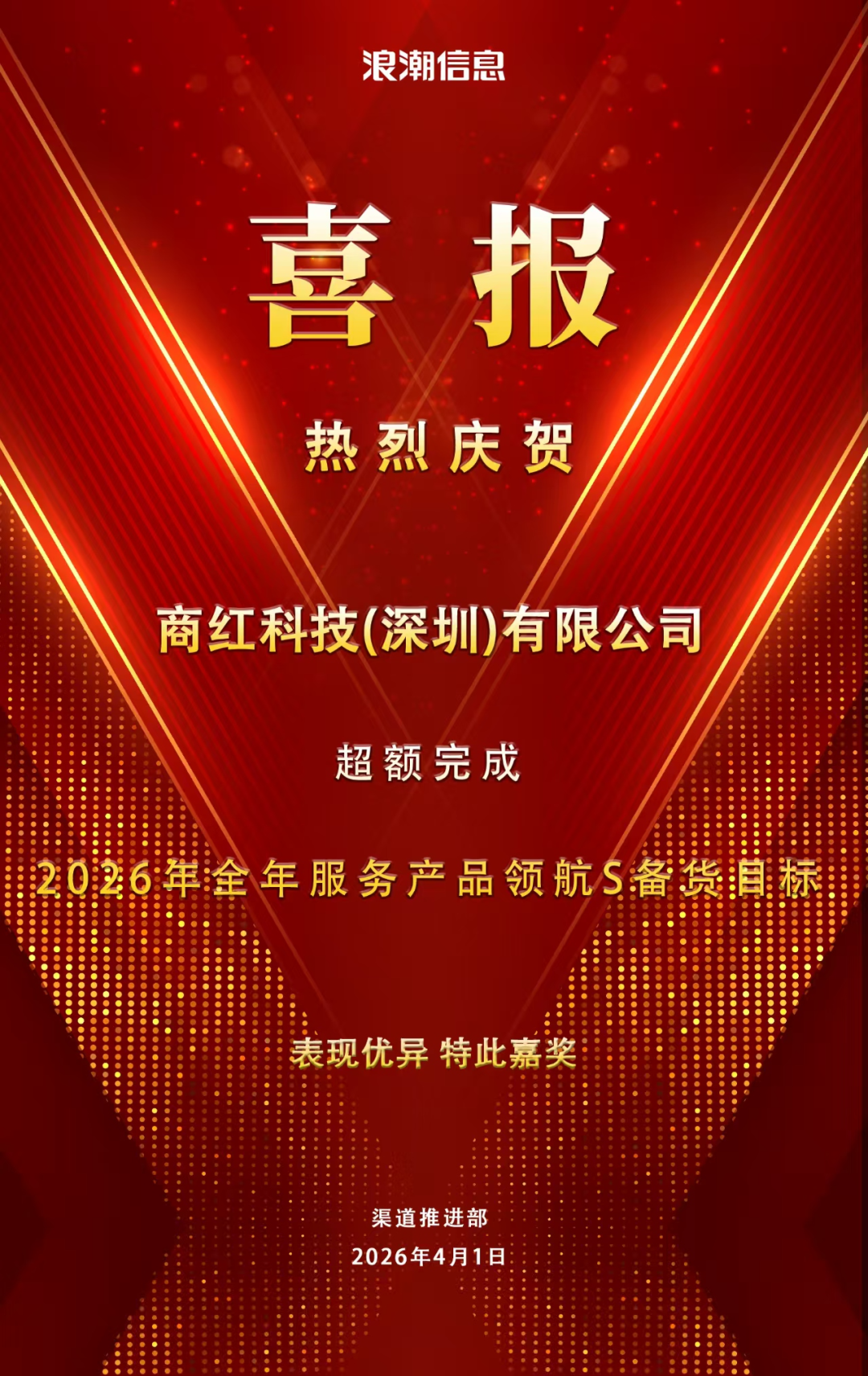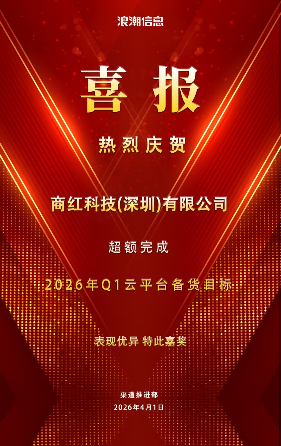 喜报频传,荣耀加身!近日,浪潮信息正式发来三份重磅喜报,热烈祝贺商红科技在 2026 年第一季度超额完成多项核心目标,获得战略伙伴的充分认可。 本次喜报中,商红科技超额完成 2026 年全年服务产品领航 S 备货目标,更在 Q1 复合钻石分销伙伴备货、云平台备货两大关键任务中,以超预期表现达成指标。这一系列成果,既是浪潮信息对商红科技渠道能力、供应链响应效率与执行力的高度认可,也是团队凝心聚力、高效推进的有力证明。 未来,商红科技将继续深化与浪潮信息的战略合作,依托浪潮领先的算力技术底座,结合自身渠道服务优势,打磨更完善的产品与服务体系,为更多客户提供更专业、高效的国产算力解决方案,携手浪潮信息共创国产算力产业高质量发展新篇章!